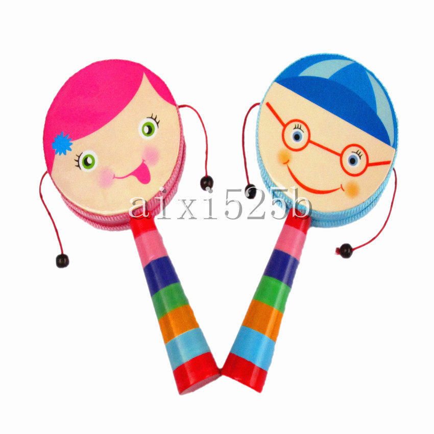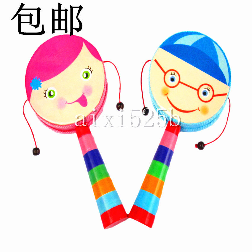 Children's toy rattle polyester drum skin wooden hand rattle baby early education educational baby toy 0-1 years old