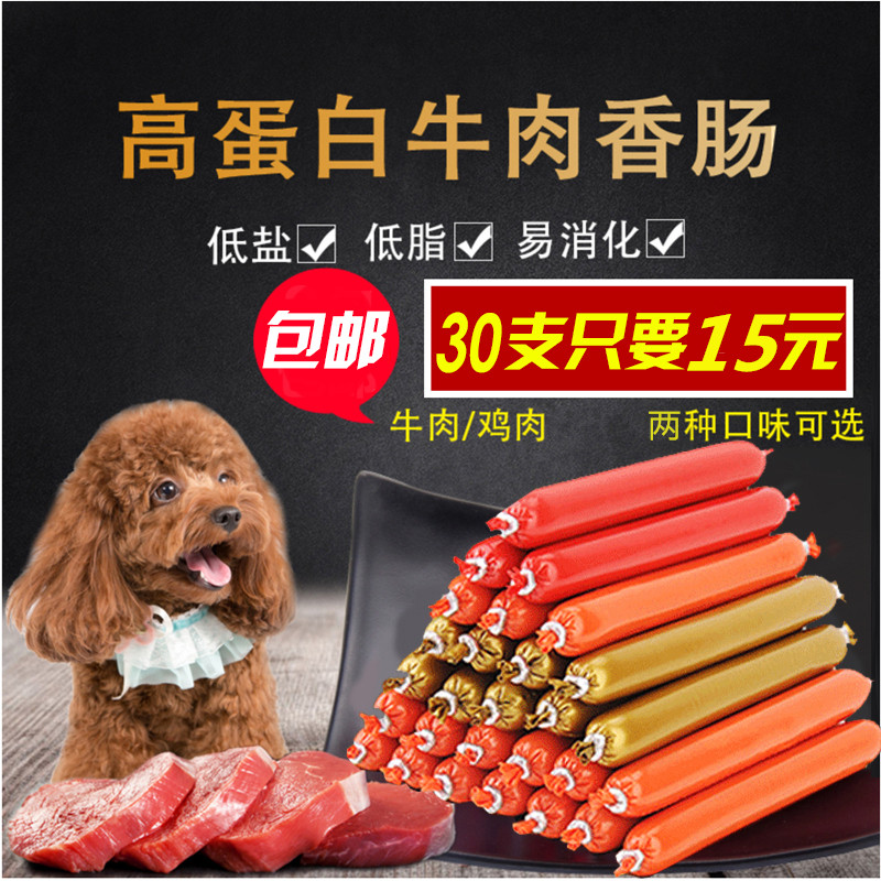 Dog snacks dog ham sausage pet dog teddy golden retriever dog beef chicken sausage 30 packs about 500g