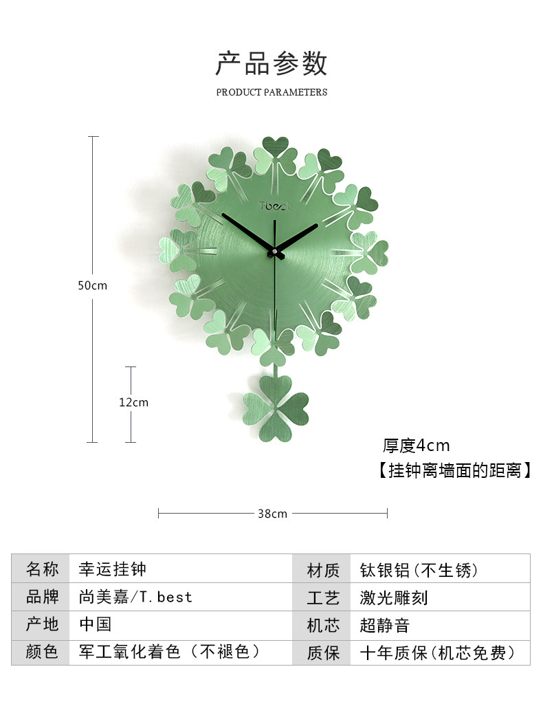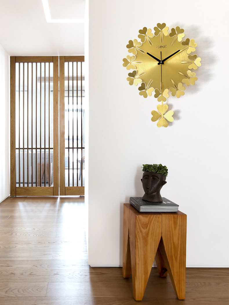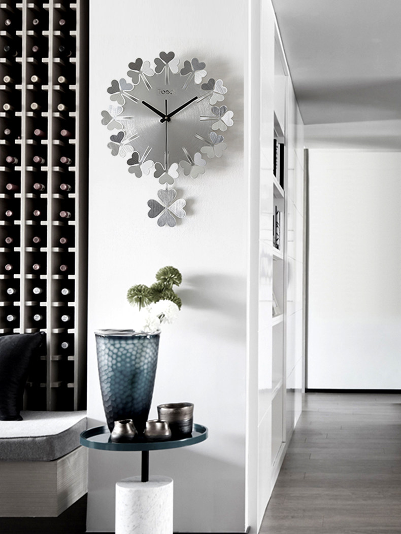 Wall clock Modern minimalist art Quartz clock Living room household mute fashion creative clock Clover light luxury watch