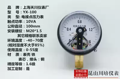 Shanghai Tianchuan instrument electric contact pressure gauge YX-100 pressure switch contact point type upper and lower limit pressure gauge