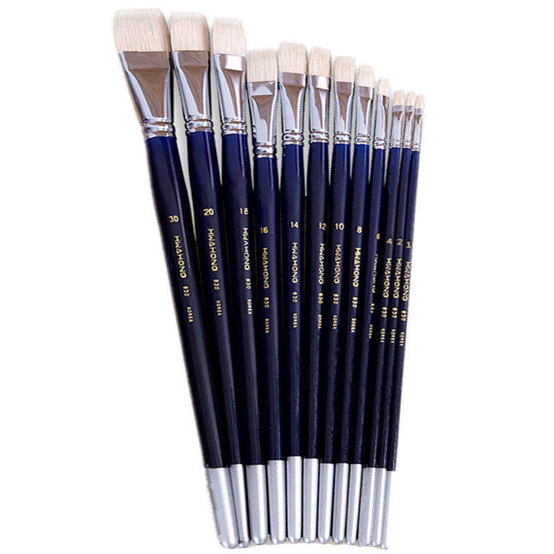 South Korea imported Hua Hong 830 series long rod flat head bristle oil brush watercolor pen acrylic pen