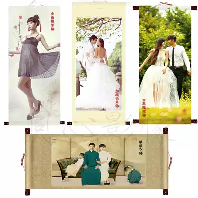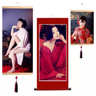Scrolls Chinese painting silk hanging picture posters custom costume photo scroll custom solid wood Chinese photo studio hanging shaft