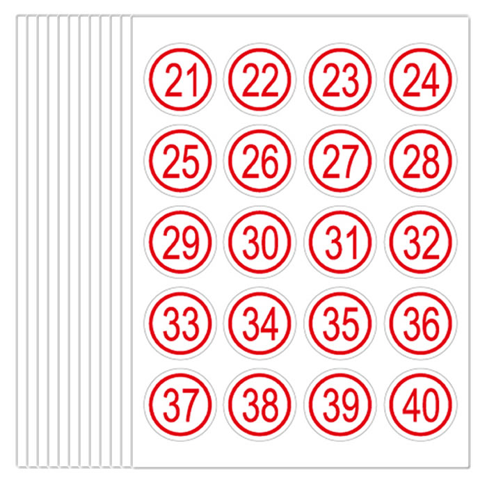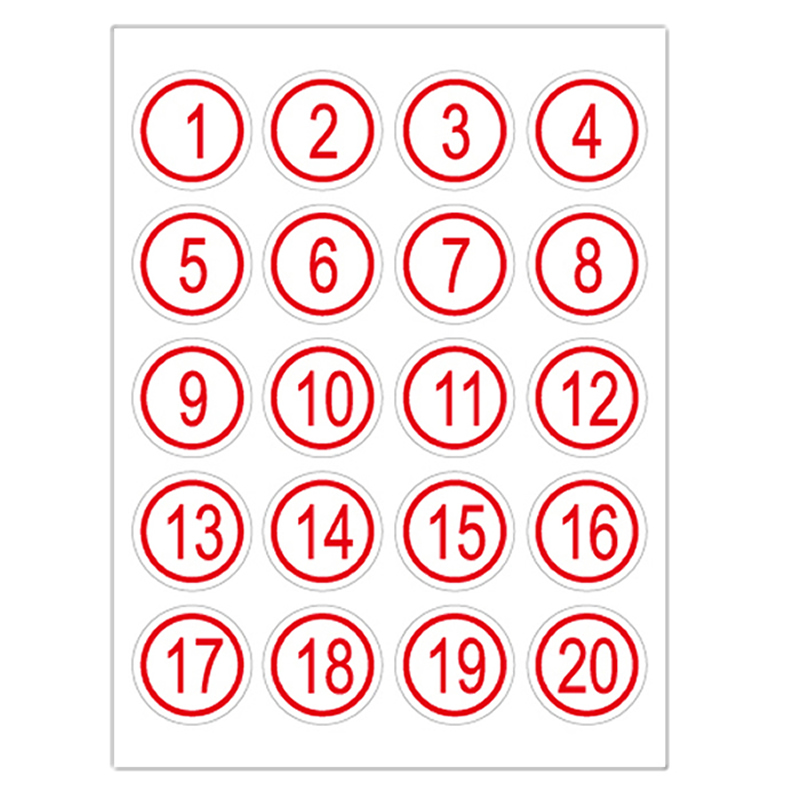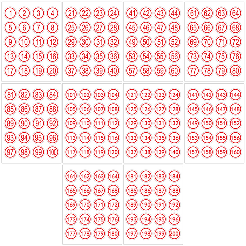 10-pack 1-200 Self-adhesive digital stickers 1-100 digital classification stickers 2cm round digital number stickers Work number label number stickers 20mm round red numbers