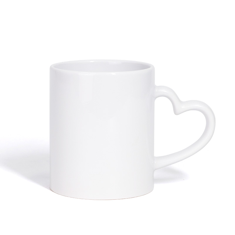 Heart-shaped handle advertising cup Thermal transfer heart-shaped handle White cup mug Heart-shaped handle white couple cup
