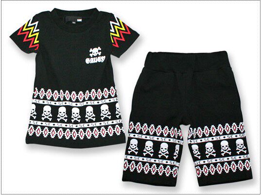 Foreign trade original order export Japanese trendy boys short-sleeved T-shirt five-point shorts suit personality skull