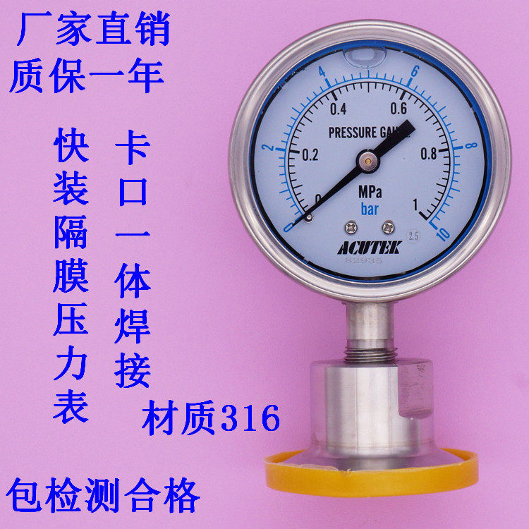 ACUTEK Fast-loaded Clamp Stainless Steel Hygiene Diagram Pressure Meter YN60BF-MC 1mpa Material 316