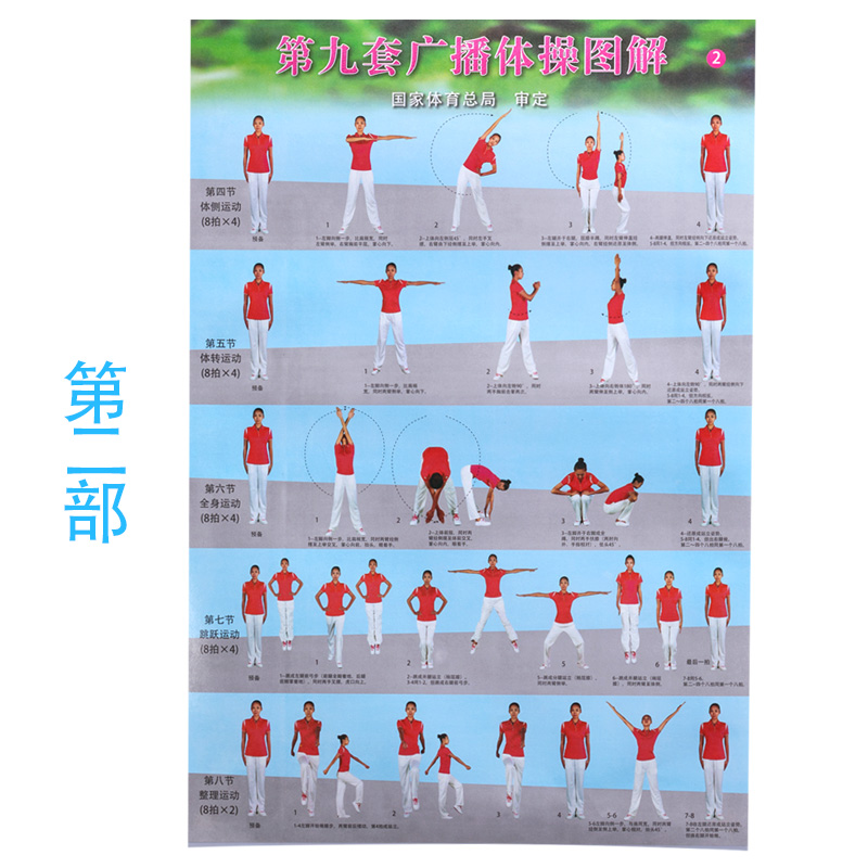 The State General Administration of Sports approved the new version of the ninth set of broadcast gymnastics wall chart Broadcast gymnastics illustrated teaching steps schematic wall chart