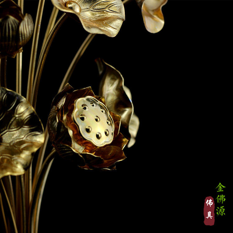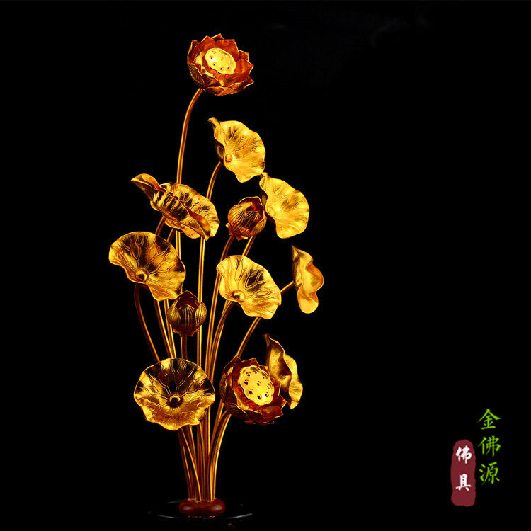 Buddha hall offering handmade gilt lotus offering Buddha gold flower aluminum lotus 13 bunches large Japanese handmade table ornaments