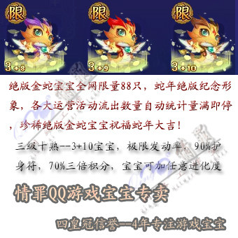 QQ Game Baby 3 10 Optimization Limited Golden Snake Baby 3 Class 10 Mature 30-900 Days with 1.5 million Evolutions