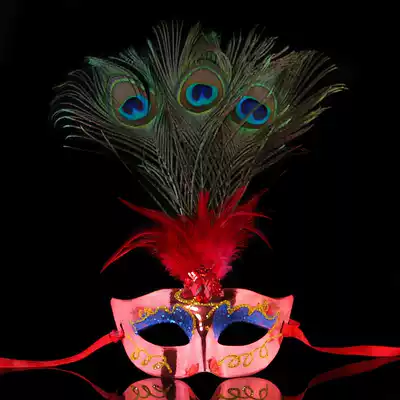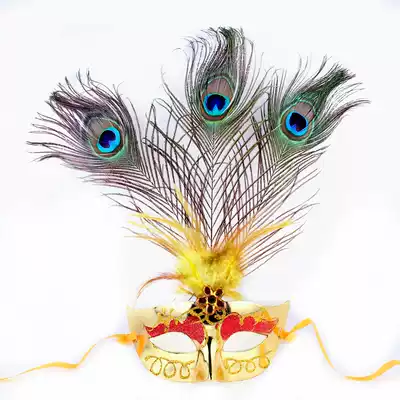 Chen Tao 40g Prom Party Mask Princess Show Mask Tip Painted Lace Side Peacock Feather Mask