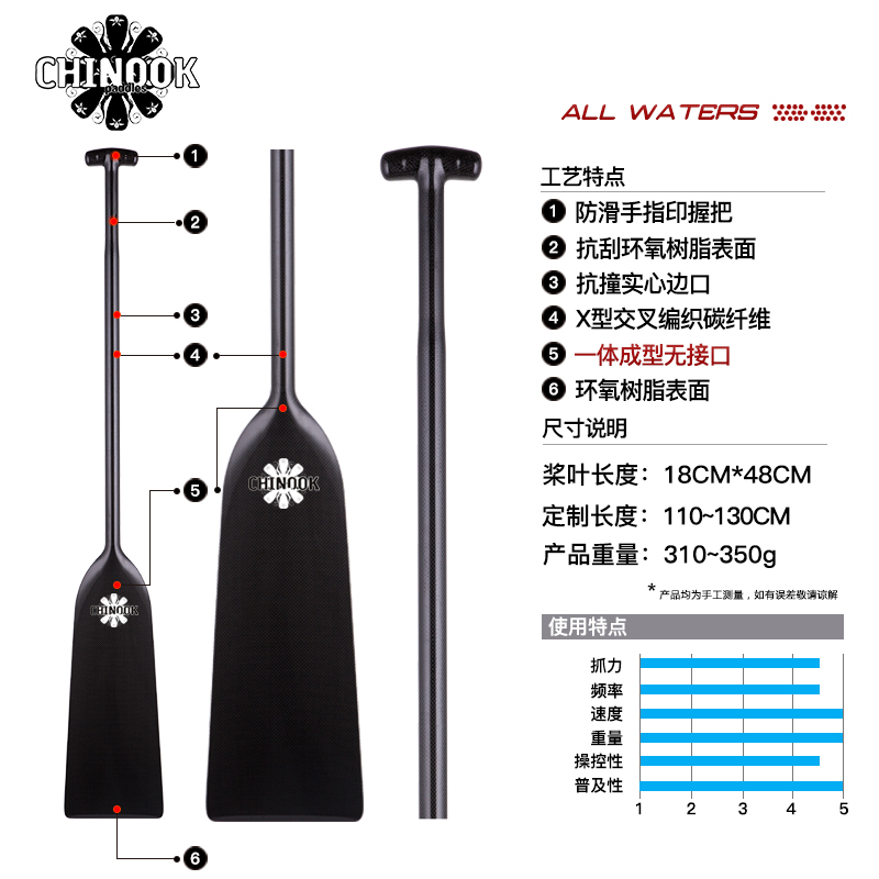 Chinook 120 (flat one-piece paddle) Chinook 123 (flat one-piece paddle) Chinook 125 (flat one-piece paddle) customized length, please consult customer service