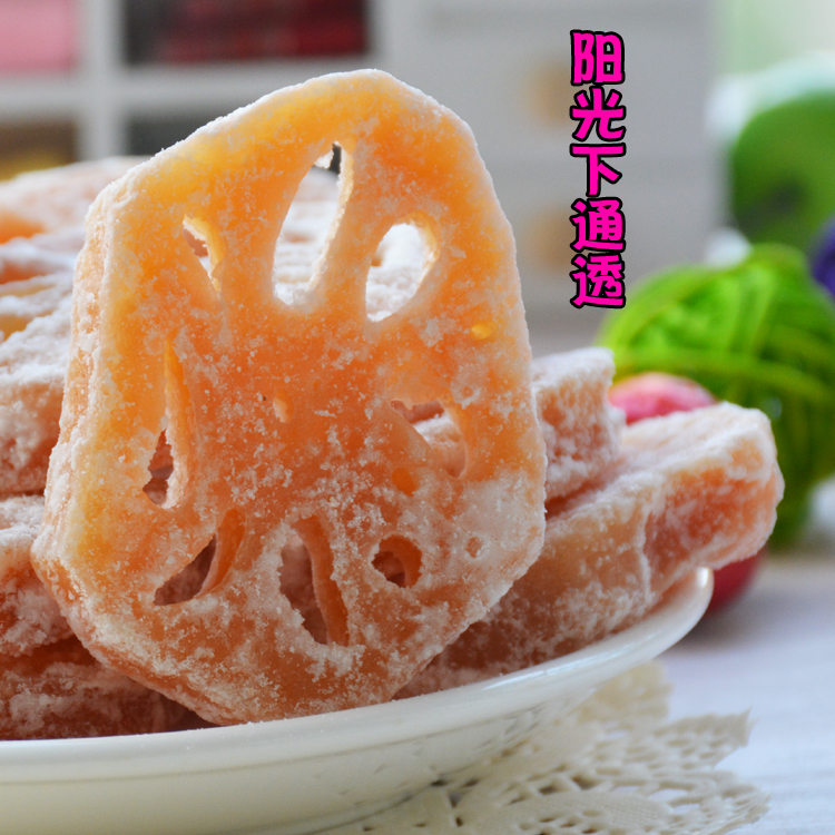 Guangdong specialty instant lotus root sugar crystal sugar lotus root slices leisure snacks candied fruit annual snacks 500g