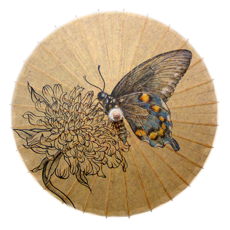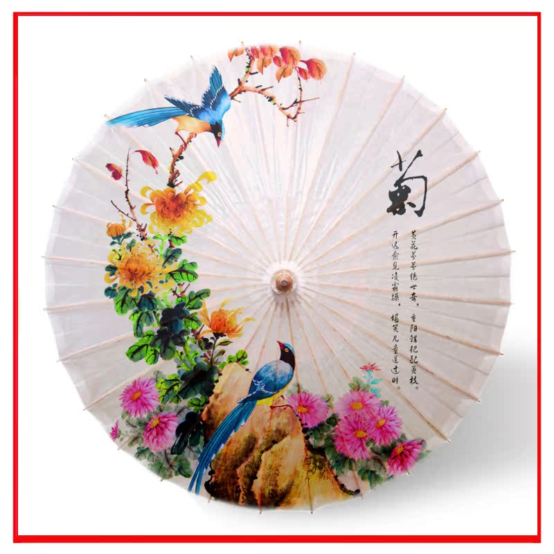Luzhou oil-paper umbrella ink chrysanthemum handmade paper umbrella rain-proof sunshade decorative umbrella classical retro craft tung oil small umbrella