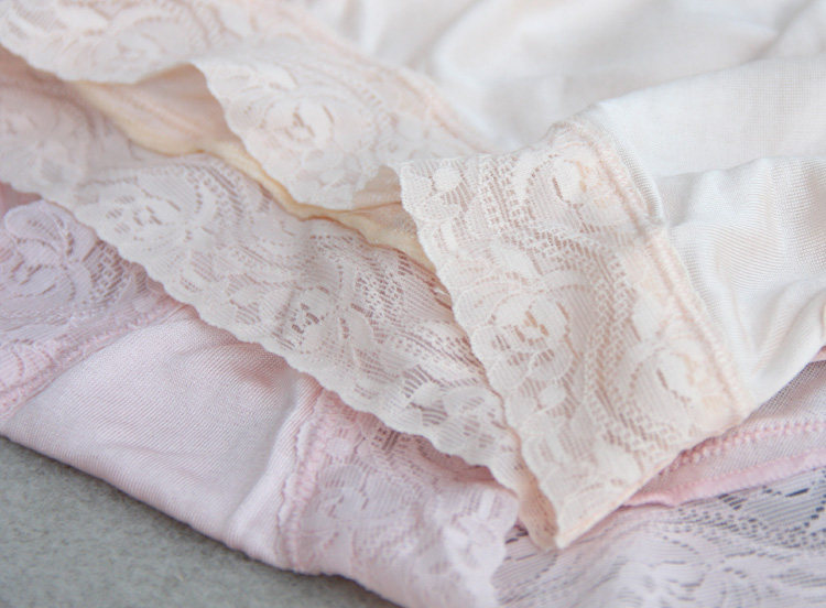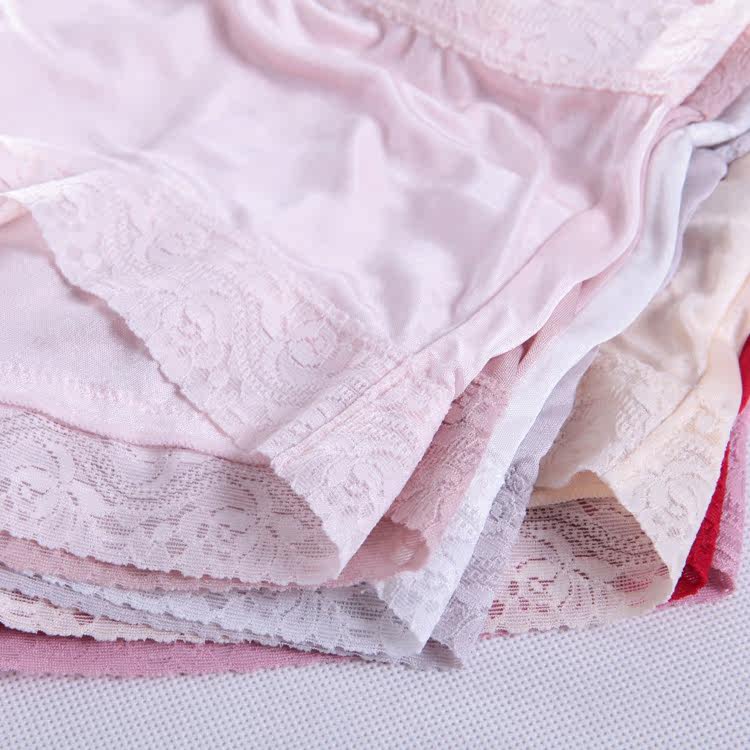 Super comfortable 100% mulberry silk women's silk boxer shorts flesh color lace seamless mid-waist silk panties