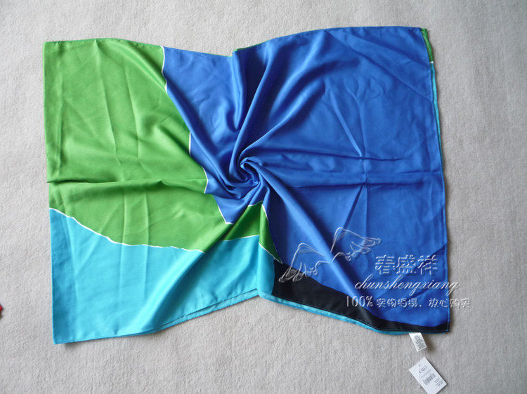 Special foreign trade original single geometric silk contrast color scarf simulation silk scarf silk scarf