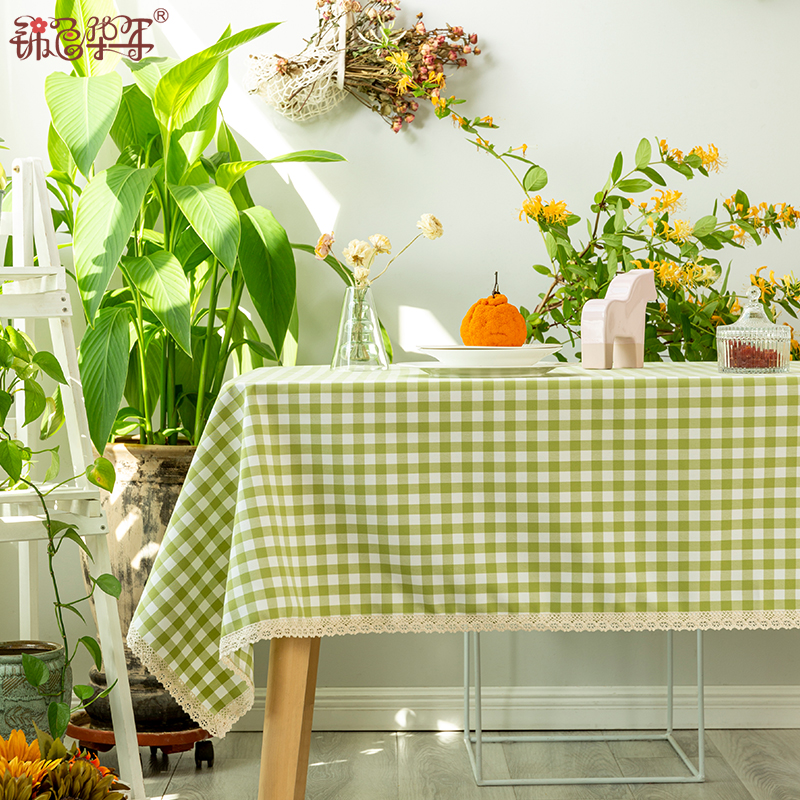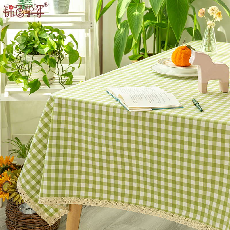 Tablecloth fabric Waterproof rectangular table cloth Nordic ins fresh coffee table tablecloth Green plaid student desk cloth