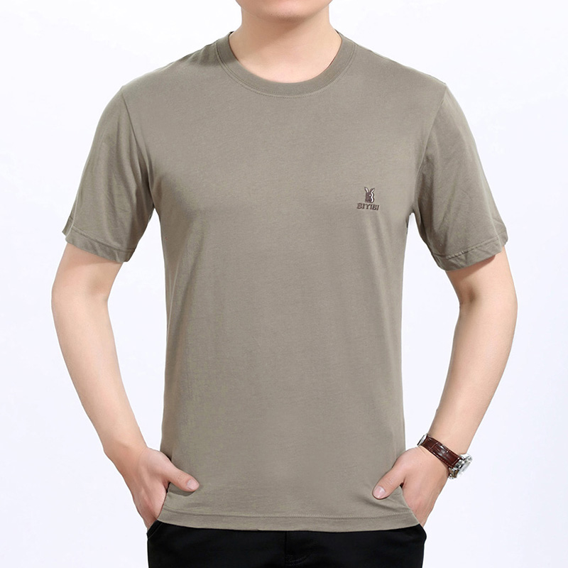 Middle Aged Men's Clothing Short Sleeve T-shirt Full Cotton Round Collar Summer Clothing Middle Aged Men's Dad Loaded Summer Half Sleeve Pure Color Sweatshirt