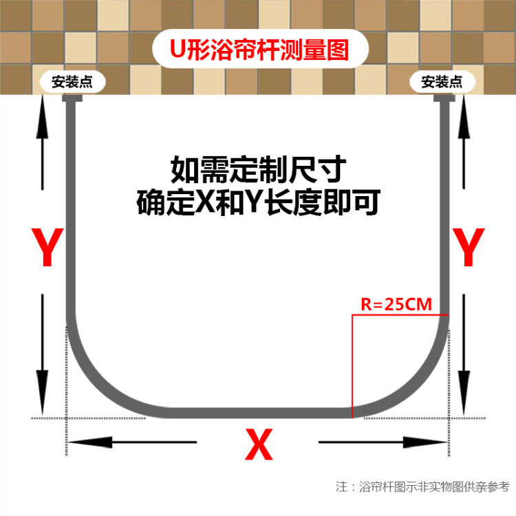 Thickened Imports 304 Stainless Steel U Type Bath Curtain Rod Suit Makeup Room Bathroom Bath Curtain Rod Bath Curtain Rack Test Hanger