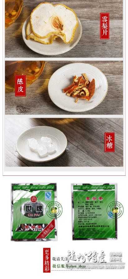 Dried Pear slices, Green tea, Chrysanthemum, Gardenia, tangerine peel