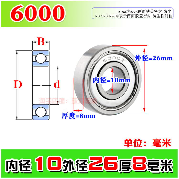 High quality deep groove ball miniature bearings 6000Z ZZ 6000RS 2RS RZ Inner diameter 10 Outer diameter 26 thick 8mm