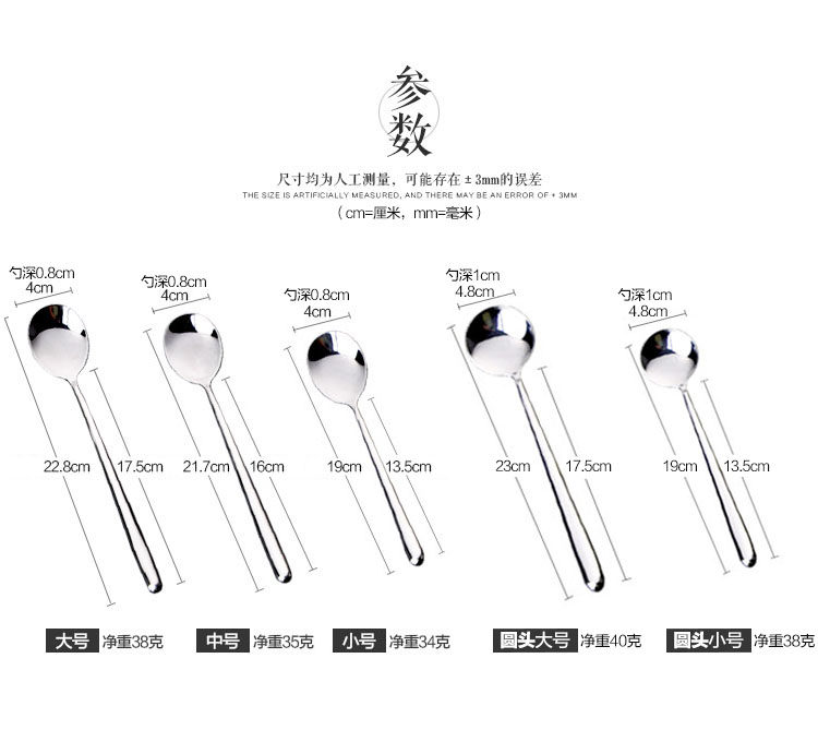 Oval spoon Small 3pcs send 1 elliptical spoon Medium 3pcs send 1 elliptical spoon Large 3pcs send 1 round head spoon Small 3pcs send 1 round head spoon Large 3pcs send 1 round head spoon