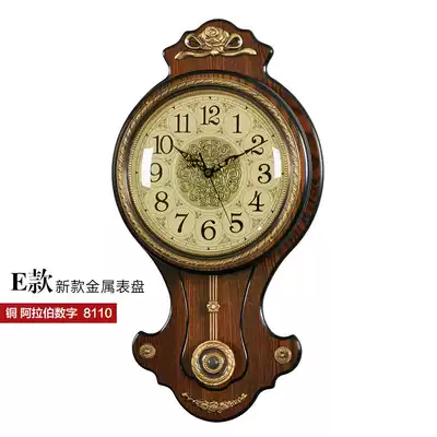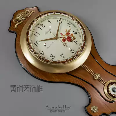 Brass European-style clock clock wall clock Household living room luxury retro creative American quartz clock Wooden wall hanging watch