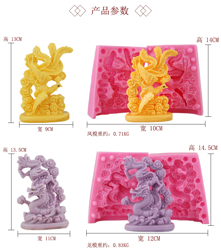Sugar art dragon and phoenix mold fondant chocolate silicone three-dimensional zodiac dragon high 21 yuan treasure plate decorated with salt carving dragon and phoenix mold