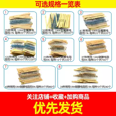 25 commonly used 1 4W metal film resistor packs 1% 20 per type, a total of 500 30 commonly used 1 4W metal film resistor packs 1% 20 per type, a total of 600