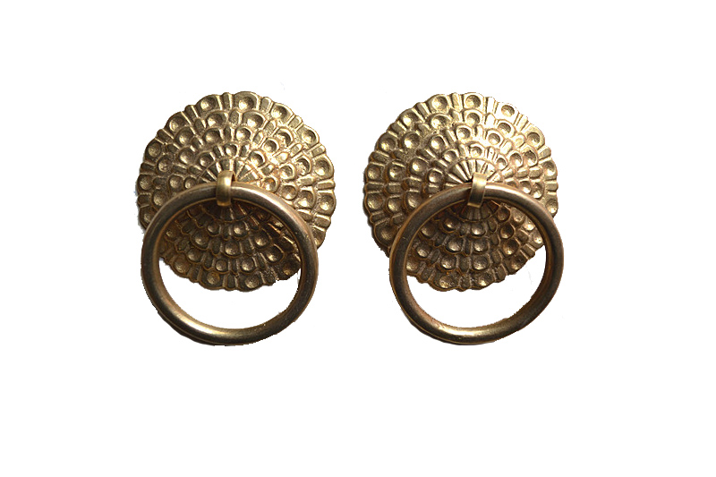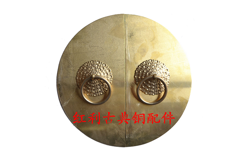 (Dividend Classical Bronze Accessories) imitation ancient pure copper furniture accessories vegetarian face round light beasthead handle 24cm
