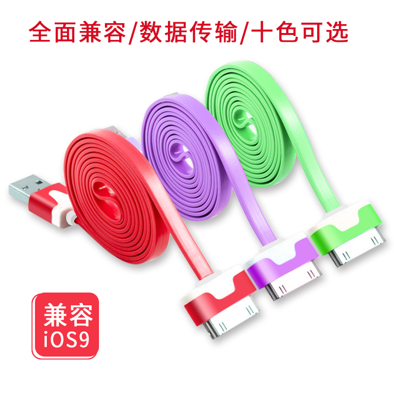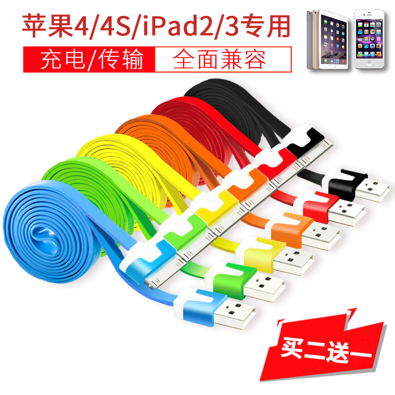 Suitable for Apple 4 data lines iPhone4s charging wire quadphone charger head ipad2 flat computer ipad3 wide mouth quick filling iPod lengthened 2 m 3 m noodles punching wire