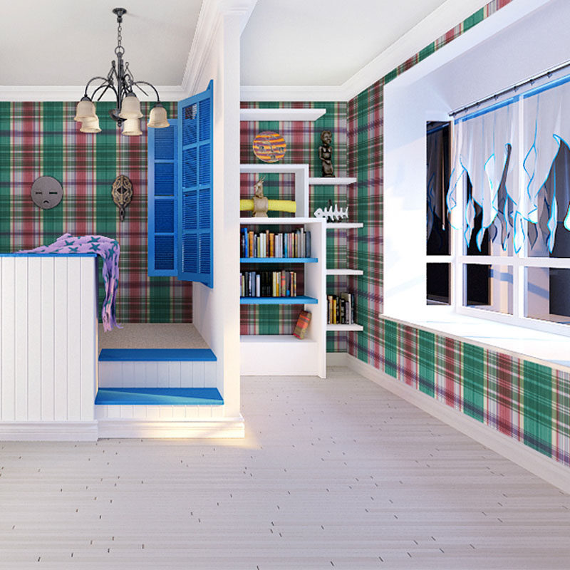 American Imported Pure Paper Wallpaper American Country British square lattice living room children's bedroom Background Wallpaper