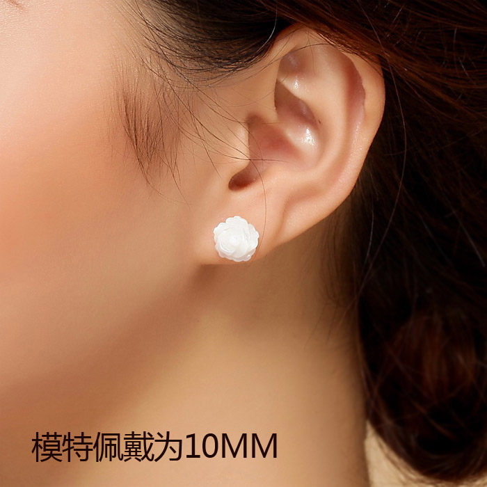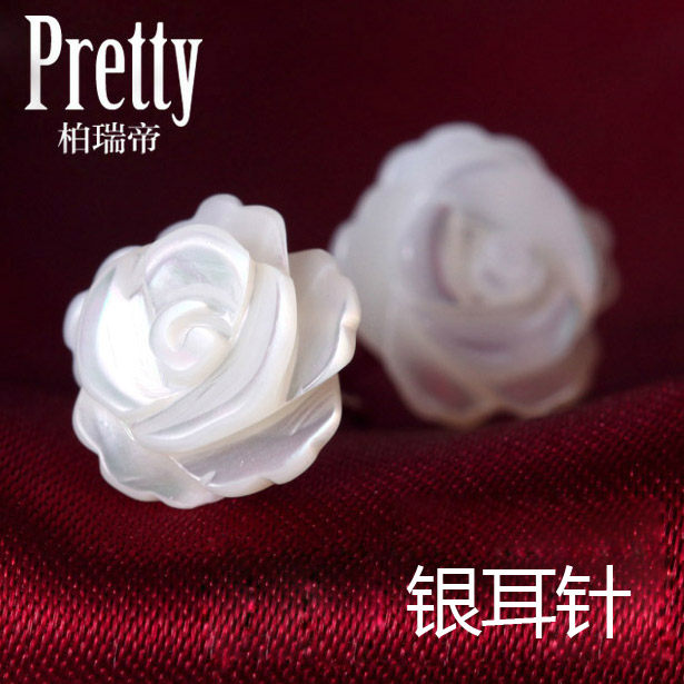 Sterling silver earrings female female Shell rose flowers Korean temperament simple earrings to sleep without picking small earrings