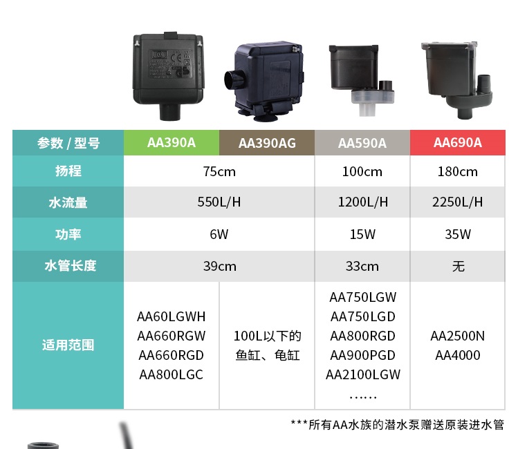 AA fish tank accessories AA aquarium submersible pump original AA water pump ultra-quiet submersible pump AA590