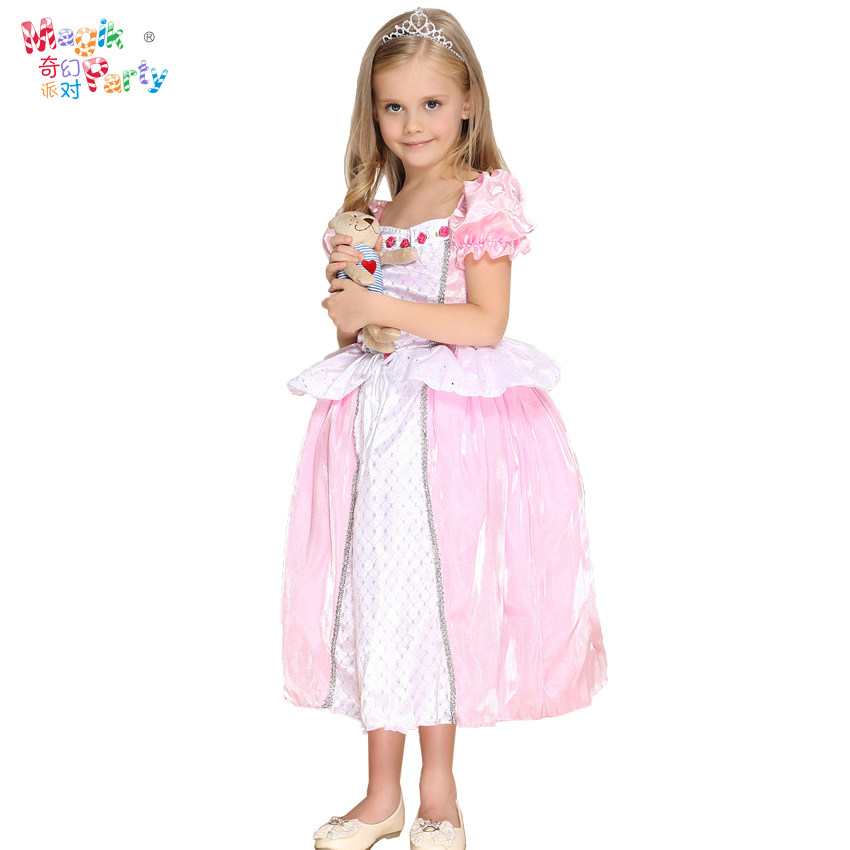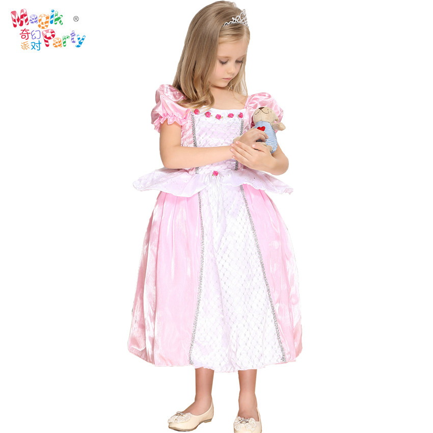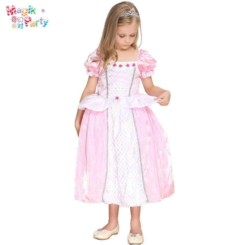Halloween Cosplay girl birthday dress performance dress wedding flower girl dress pink and white flower princess dress