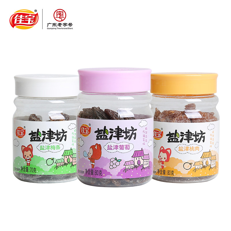 Salt Zine Plum Strips 70g * 3 cans of salt Zinin 80g * 3 cans of salt Zinin grapes 80g * 3 jars of plum strips of peach caramels (each 1 jar) plum strips 2 cans of peach meat 2 jars of grapes 1