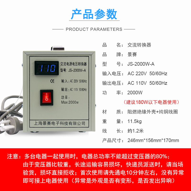 Jingsai 2000W transformer 220V to 110V Japan 100 USA power supply voltage converter 110V to 220V