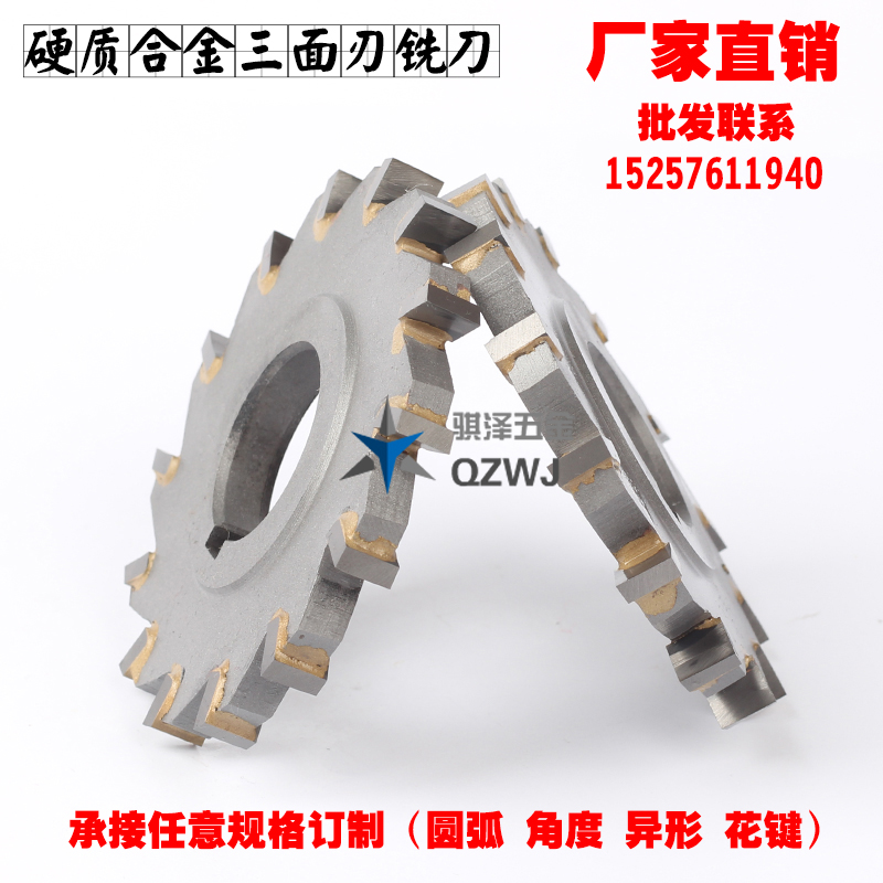 Carbide-inlaid tungsten steel three-sided edge milling blade straight tooth disc saw blade 125*3 4 5 6 8 10 12