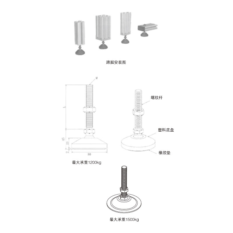 Aluminum extrusion material accessories Aluminum industrial aluminum Industrial aluminum extrusion material accessories Adjustment foot Nylon foot Metal foot