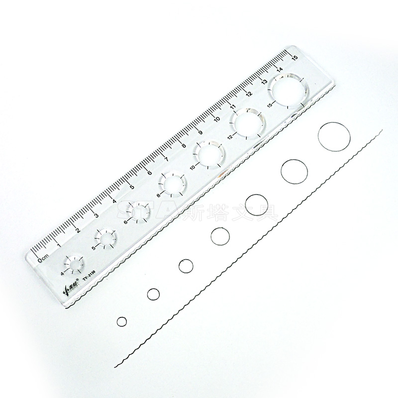 Wavy curve ruler 15cm transparent round template YASL large scale children's primary school students start school with a hole ruler