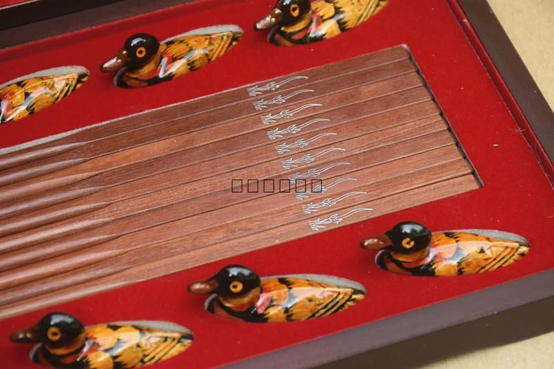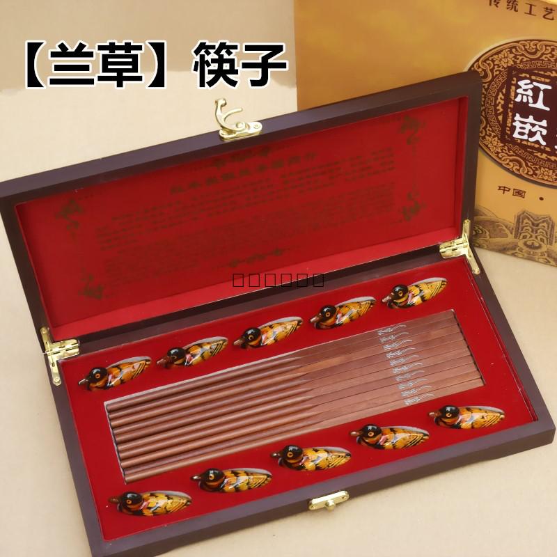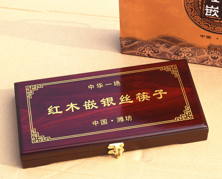 Red Wood Insert Silver Chopsticks Solid Wood 10 Double Dress Gift Box Wedding Abroad Chinese Featured Gifts for Old Foreign Business Gift-Taobao