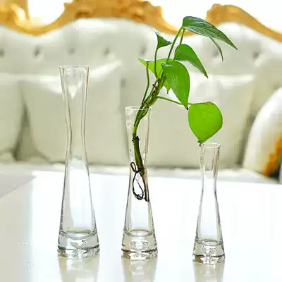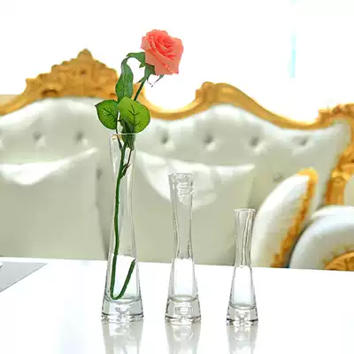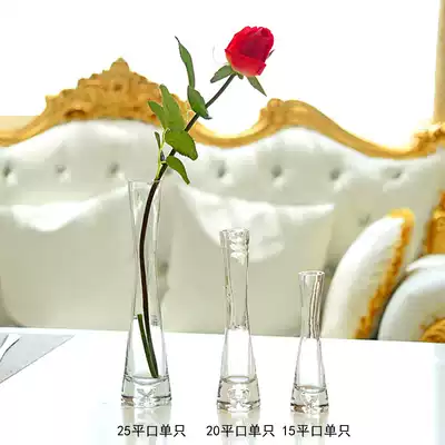 Small single flat mouth transparent glass vase Living room dining table modern simple creative pastoral hydroponic single decoration