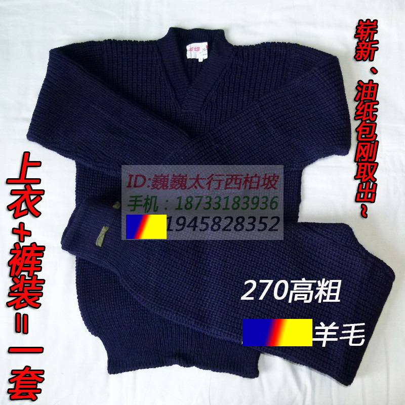 Moving warehouse Thick hidden blue warm real material pure wool V-neck sweater pants set