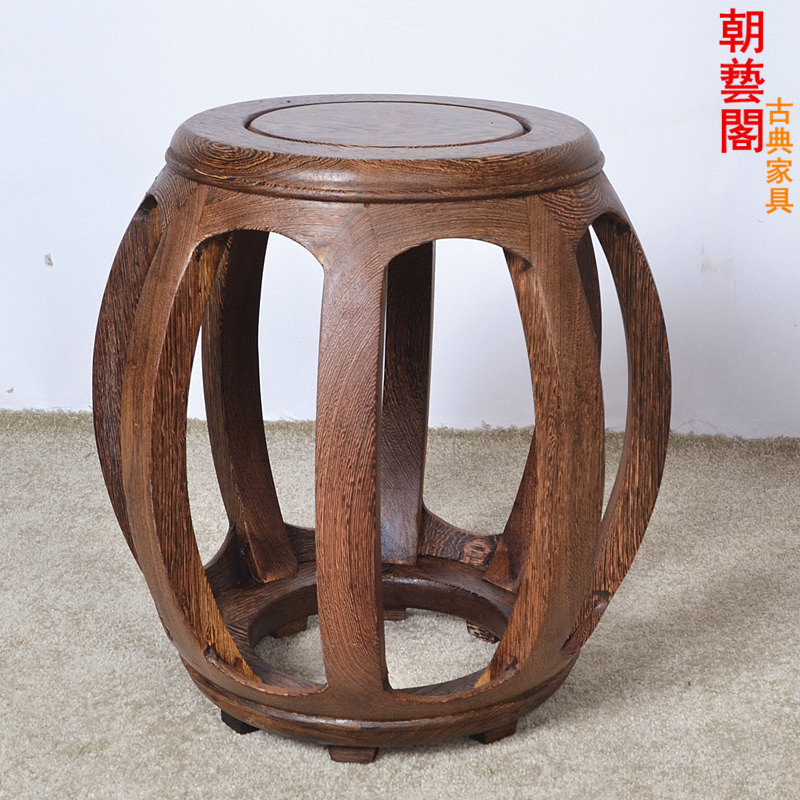 Mahogany furniture chicken wing Wood round drum stool round Pier low Pier drum Pier embroidery Pier solid wood Chinese style antique stool