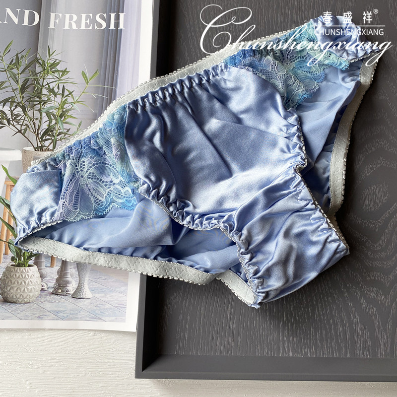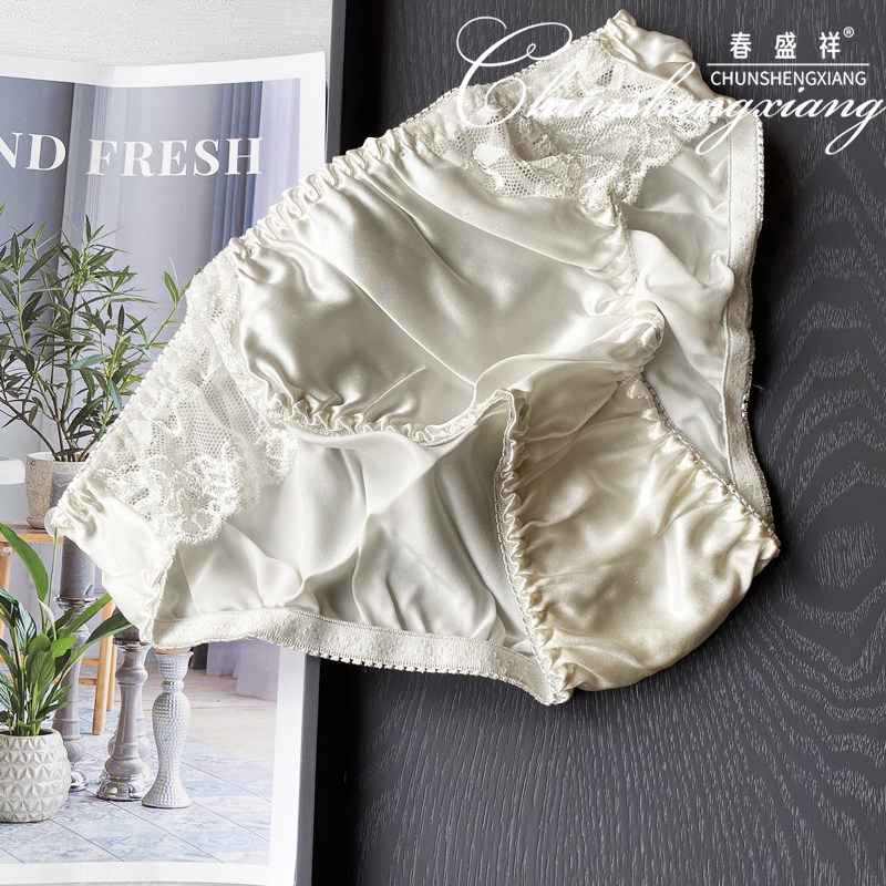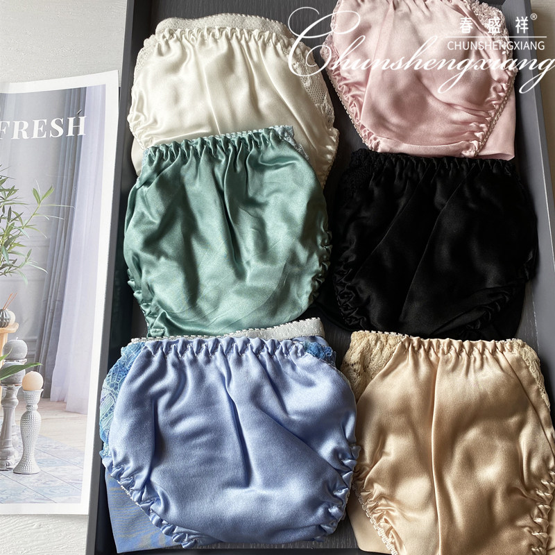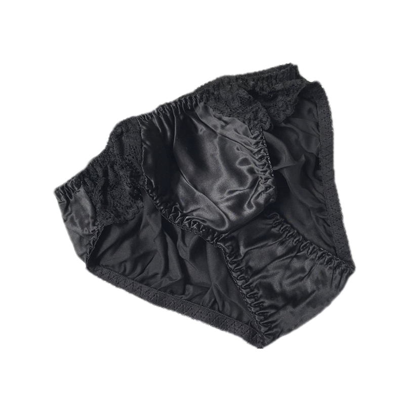 Summer Mulberry Silk Women's 100 Silk Panties Plain Crepe Satin Sweet Briefs Lace Trim Solid Color Low Waist