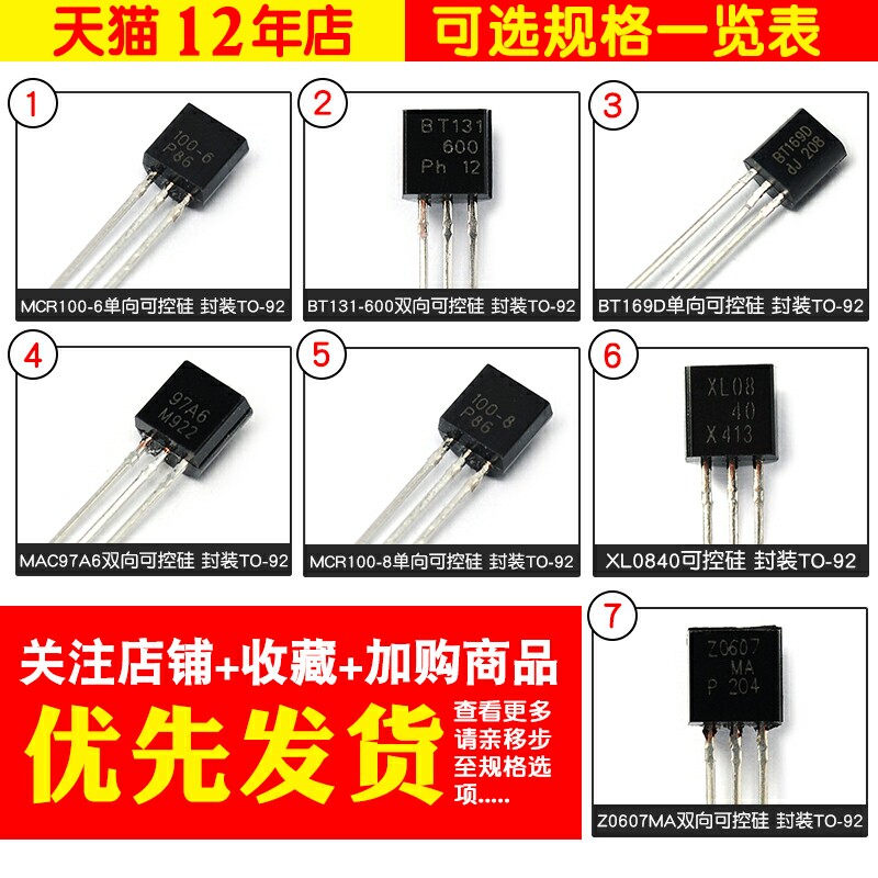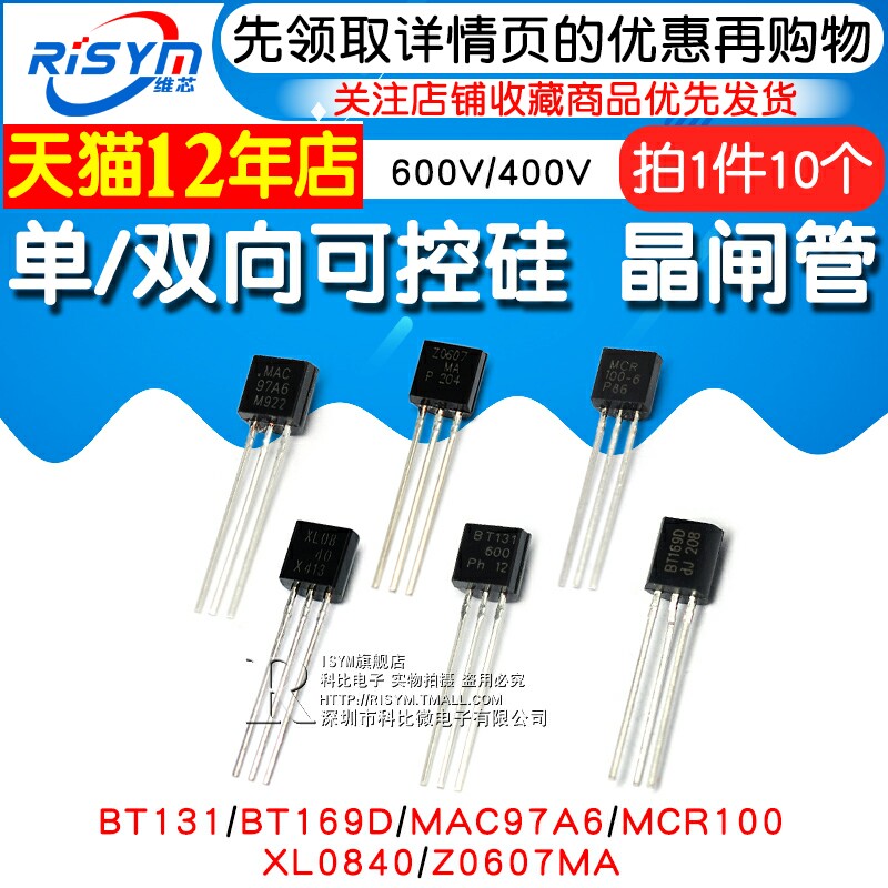 MCR100-6 One-way Controlable Silicon 0 8A 400V Direct Plug Packaging TO92 (10) BT131-600 Bidirectional Controlable Silicon 1A