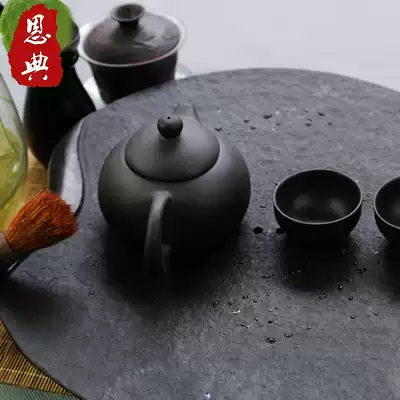 Wujin Stone tea tray whole office home small natural stone tea table oval black gold stone tea table Tea Sea