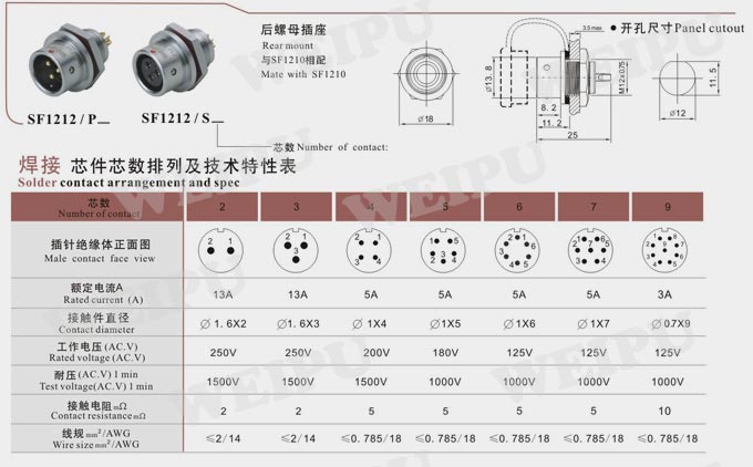 weipu aviation plug SF12-2 core 3 core 4 core 5 core 6 core 7 core 9 core round screw waterproof IP67