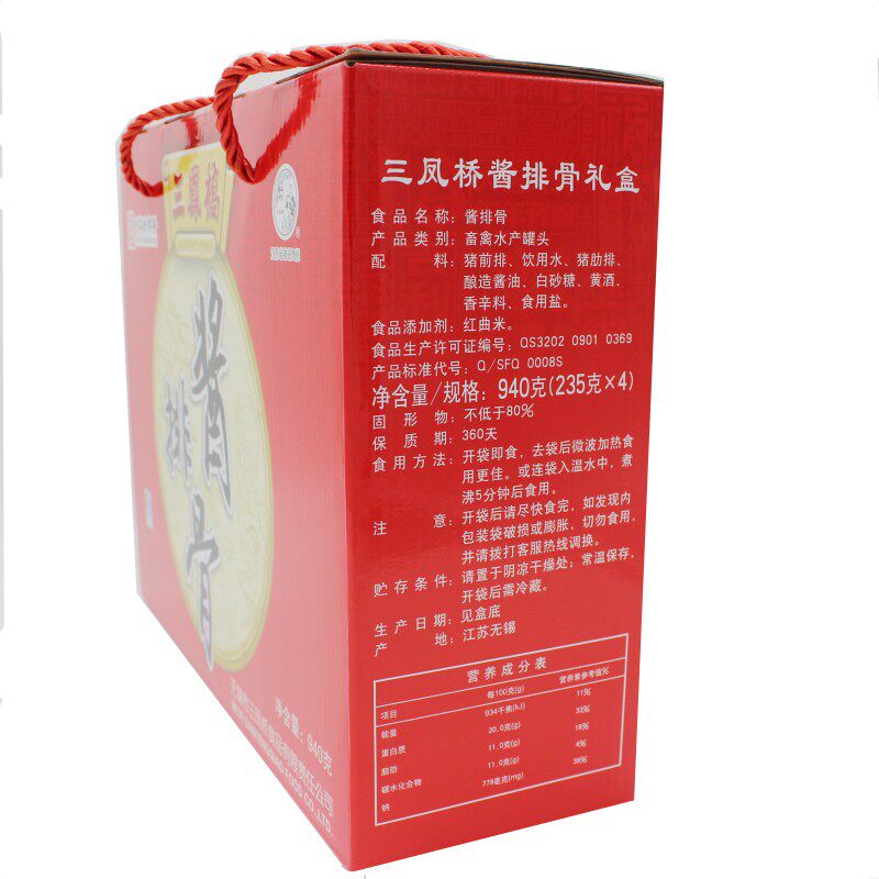 China's time-honored brand Wuxi specialty Sanfengqiao sauce ribs gift box 940g ribs gift box snacks New Year meat snacks