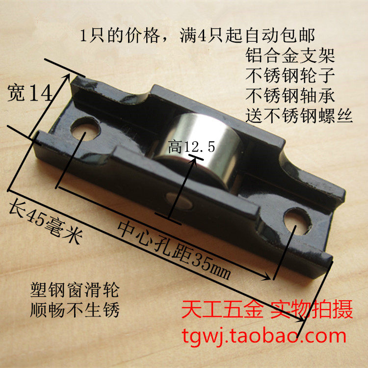 Solid plastic-steel pull door and window pulley 14mm width 77 type single flat wheel stainless steel bearing wheel display cabinet shifting door wheel