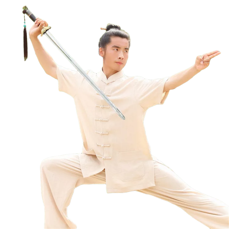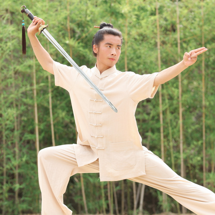 Hongyue Wudang Tai Chi Suit Summer Short Sleeve Cotton and Hemp Morning Exercise Suit Wushu Practice Suit Linen Tai Chi Kung Fu Men and Women